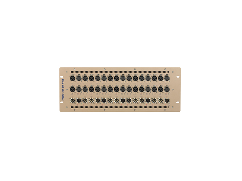 The CDC I/O 3216-C is a 4U fixed construction unit with 32 mic/line analog inputs and 16 XLR analog outputs. A dedicated low-latency MegaCOMMS audio network protocol is used to connect the stage box to the mixing console. Using only one pair of coaxial cable connections, the CDC I/O3216-C can be placed up to 150 meters away from the mixing console. The microphone preamp can be remotely controlled on the mixing console, and the output can be distributed. To complete the user interface, indicators are provided including signal/overload/phantom power status indication, plus mute indication for the outputs.